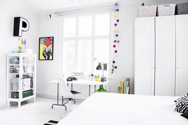 Geometryczne wzory, mają od jakiegoś czasu swoje 5 minut, trzeba przyznać że idealnie się wpisują w biało-czarny trend. W tym domu ktoś fajnie dodał odrobinę różnorodnych kolorów co jest dla mnie prawdziwe i naturalne. Pojawia się więc miętowy kultowy termos, kolorowe pudełka, plakat czy w pokoju dziecka kolorowe zabawki i dekoracje. szalenie podoba mi się pokój z biurkiem i witryną, no moja bajka od początku do końca, tyle że moja sypialnia, która jest też biurem ma znacznie mniejszy metraż i o witrynie to ja mogą sobie pomarzyć, co oczywiście czasami zdarza mi się. Miłego długiego weekendu. Dla mnie będzie pracowity ale może bez tego „nerwa” uda się to wszystko ogarnąć.
