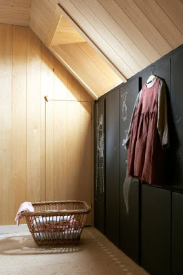 Na mnie ogromne wrażenie zrobiła kuchnia i sposób podania posiłku, tak się gapiłam na to zdjęcie dłuższą chwilę a później jeszcze na taką dłuższą chwilę zatrzymałam się na strychu w pokoju dzieci, który trochę romantyczny, trochę staroświecki skrywa tajemnice jego mieszkanek. Mebelki są malowane przez same dziewczynki. I znowu uderza prostota, minimalizm i oszczędność kolorów i form. Naturalny kolor drewna I ono samo zdają się w tym domu odgrywać pierwsze skrzypce, ale nie tylko, bo jak dobrze się przyjrzeć to i kamieni jest sporo jako punkciki dekoracyjne I zatrzymujące wzrok. Jeszcze nie zdarzyło mi się żeby opublikować taka ilość zdjęć za jednym razem, ale ten dom to nie tylko pokoje, kuchnia I łazienka. Ten dom to ogród, zwierzęta i stodoła z punktem obserwacyjnym I miejscem zabaw gdy na dworze słota. I tak szczerze, bo już po 23 wiec można na szczerość się zdobyć trochę mi się ciężko zrobiło po obejrzeniu tego jednego z wielu miejsc na ziemi o których pewnie nie tylko ja będę marzyć….już nie mówiąc o moich córach dla których sam dom jeszcze nie ma znaczenia, a jedynie to, co jest na zewnątrz niego te kury, owieczki….. Do poniedziałku:)