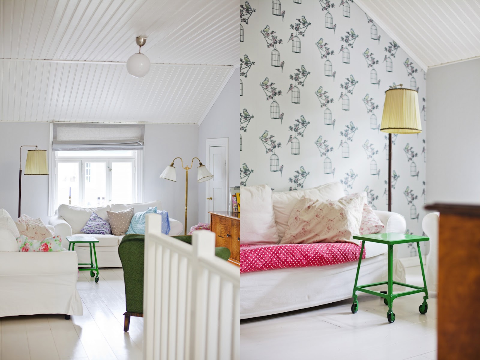 Ale ten czas przyspieszył, prawie bym się nie załapała z domem kwietnia a jest taki jaki lubię najbardziej i w dodatku świeci przykładem dobrych połączeń tkanin, tapet i koloru z którym gospodarze żyją naprawdę za pan brat! Szalenie przypadły mi do gustu krzesła, kolory pastelowe na nich a także łóżeczka z narzutami i poduszkami od sasa do lasa a jednak… . Prawda, że zwyczajnie a niezwyczajnie. Miło się tu wpada i ogląda te urocze kąty. Ale nam się MAJÓWKOWO z tym wpisem zrobiło:):).